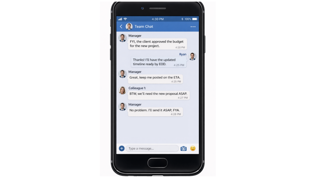O uso de abreviações em inglês não se limita às redes sociais. No ambiente corporativo — especialmente em empresas globais e comunicação digital — essas siglas também são comuns.